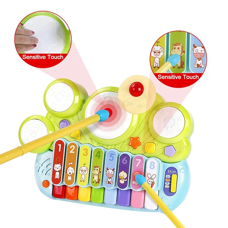 HOT SALE 3-In-1 Musical Instrument Toy Electronic Piano Keyboard Xylophone Drum Set with Sticks Musical Toys