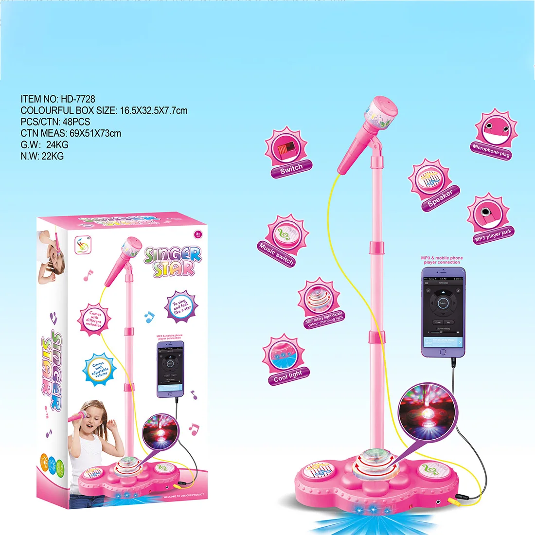 BEST Kids Stand Type Microphone Karaoke Machine Karaoke Music Toy for 3-6 Years Old Toy Musical Instrume